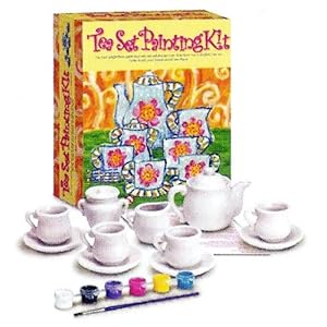 Product Description : Tea Set Painting Kit includes a 13-piece tea set (1_" to 2_" tall), brush and paint strip.